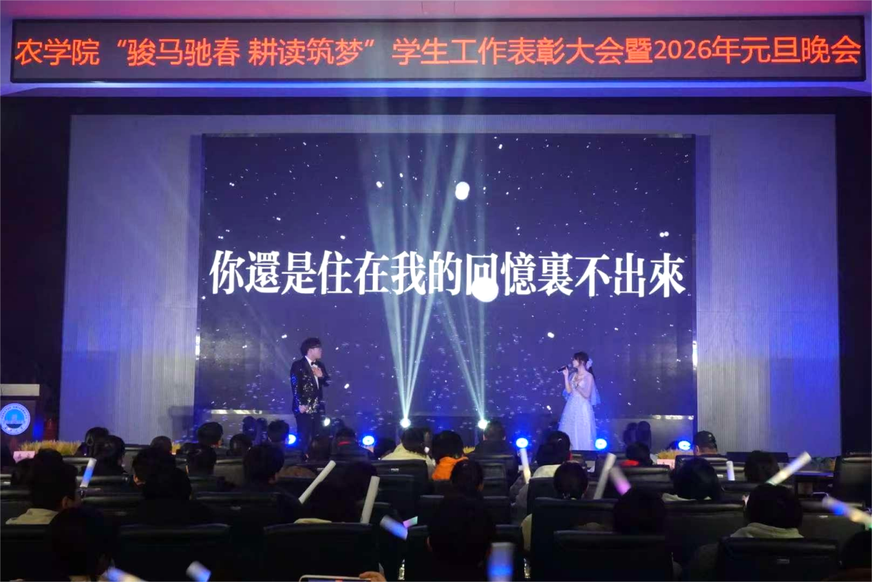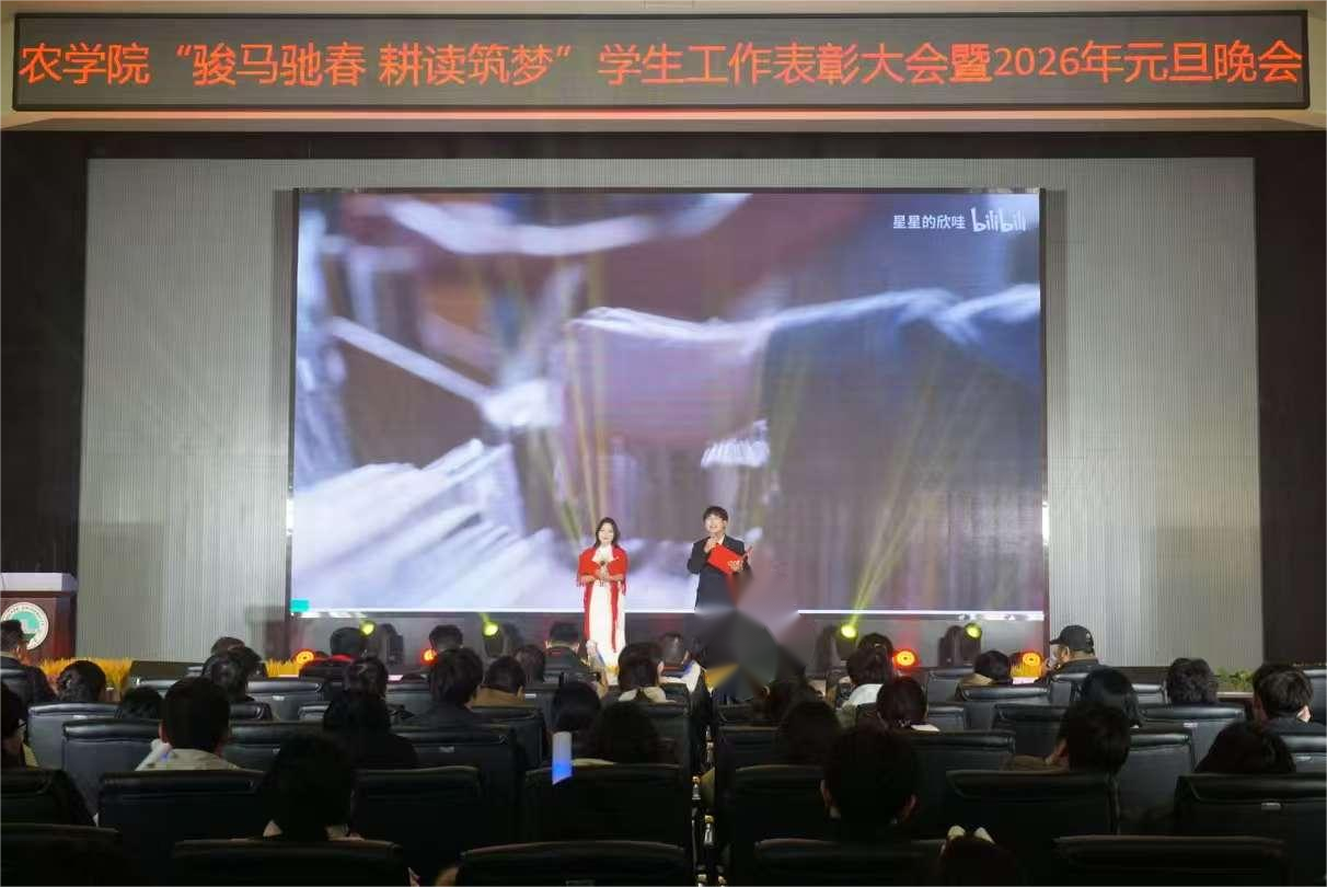 (通讯员 向建华 徐馨悦 严树彬 郑怡乐 宁菀婷 王思雨)灵蛇辞旧承佳绩,火马奔腾启新程。12 月 26 日晚,球王会平台 “骏马驰春·耕读筑梦” 学生工作表彰大会暨 2026 年元旦晚会在农科大楼 1058 报告厅隆重举行。球王会平台本科生院副院长颜学俊、研究生院副院长黄龙、校团委科长刘冬冬、园艺园林学院学工办主任张颖旭、化工学院团委书记周学素及兄弟学院的师生代表等嘉宾,与球王会平台党委书记周锦华、党委副书记尹小华、院长助理邓建新、农资系主任李燕丽及学工队伍、任课教师、学子们齐聚一堂,共赴这场融青春风采、农科学子担当与家国情怀于一体的年度盛会。
