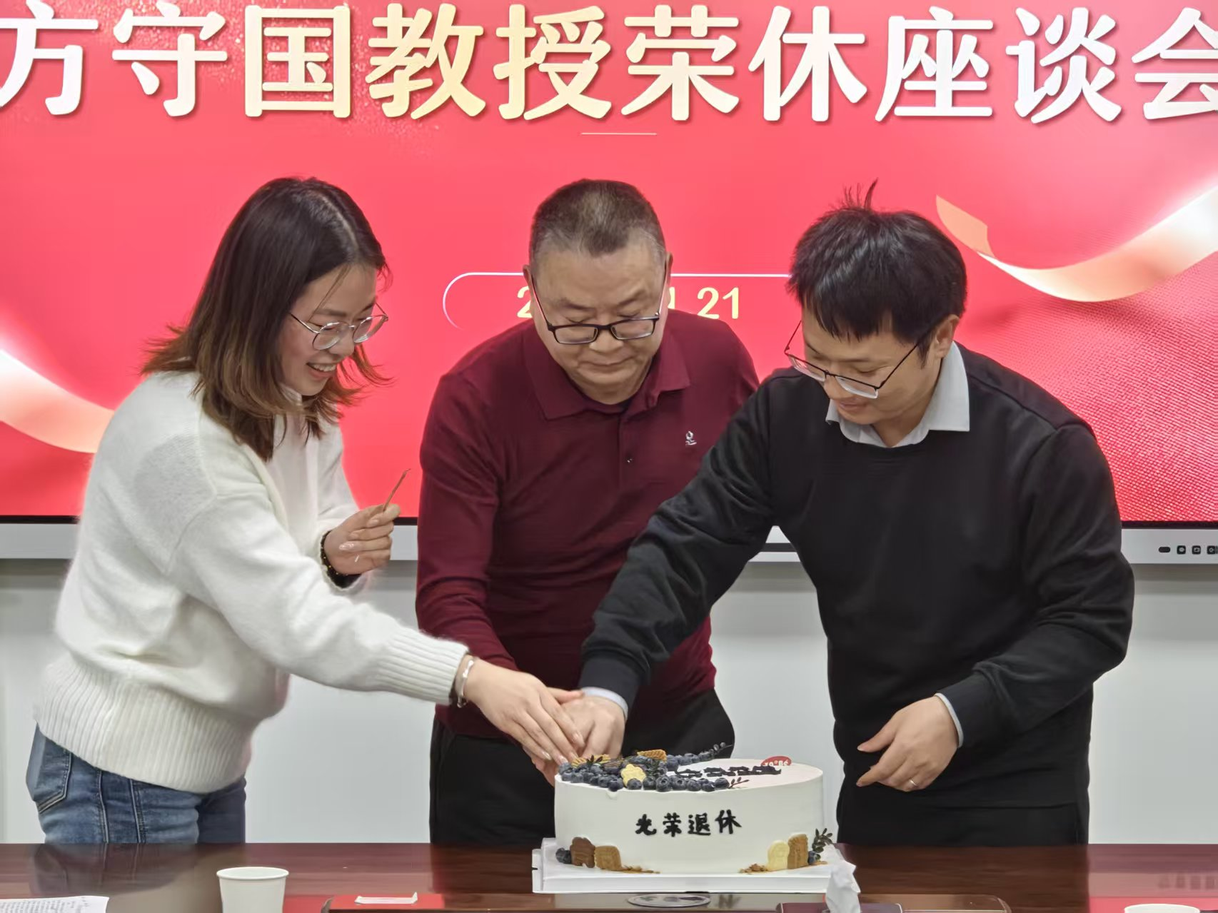 座谈会在张运波院长的致辞中启幕。他深情回溯了方教授从青丝到白发的耕耘足迹,从国内苦读到海外求知,最终扎根球王会平台沃土,将半生献给农学教育。院长赞誉其科研坚守,生动诠释农科人吃苦耐劳的精神内核,并代表学院祝愿方教授退休生活丰富多彩,常回家看看。青年教师代表程晓琴献上馥郁花束,课题组新进教师龚攀与其博士生张明静送上荣休蛋糕,在甜蜜分享中传递全院师生的崇高敬意。