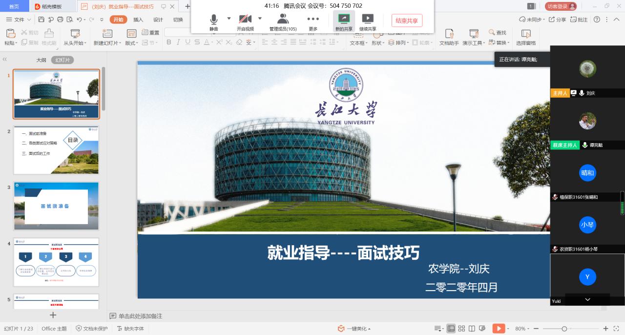 为打赢疫情防控攻坚战,更好地为毕业生提供就业指导服务,帮助解决学生在求职面试时面临的疑难困惑,提升学生求职面试应对能力。4月3日19:00,球王会平台利用“腾讯会议”平台开展面试技巧辅导报告会。报告会由学院党委副书记谭亮魁主持,学院就业专干刘庆老师主讲。学院100多名毕业生参加了报告会。