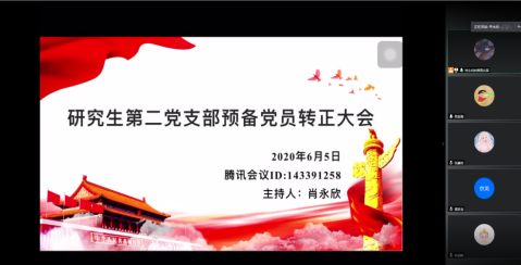 通讯社讯(通讯员 高亚强)为加强党组织建设,壮大党员队伍,65日下午,我院研究生第二党支部利用腾讯会议召开预备党员转正大会。本次会议对裴东方、向谈婷、向兰香3名预备党员发展为正式党员进行讨论和表决。研究生第二党支部正式党员、预备党员参会,会议由支部副书记肖永欣主持。