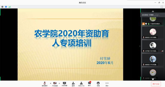 通讯社讯(学生记者 王吉)为进一步加强我院学生对学校资助政策的了解,6月19日上午十点整,我院通过“腾讯会议”平台开展了2020年资助育人专项培训活动。此次培训由辅导员付雪娇老师主讲,17级全体同学以及18级、19级班长、团支书、生活委员等共同参与本次培训。