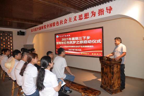 通讯社讯(通讯员 杜应杓)结合产业发展,助推乡村振兴。7月26日下午,我院产业发展服务队在党委副书记谭亮魁、辅导员付雪娇老师的带领下,前往远安县茅坪场镇瓦仓村党内政治生活体验馆,举行球王会平台2021年瓦仓村暑期“三下乡”启动仪式。本次参会的嘉宾有:远安县团委副书记赵静、农业农村局副局长刘春艳、农业农村局发展股股长刘阳、瓦仓村村支部书记宋仕龙、华强化工生态农业技术服务中心培训部部长邓超然。