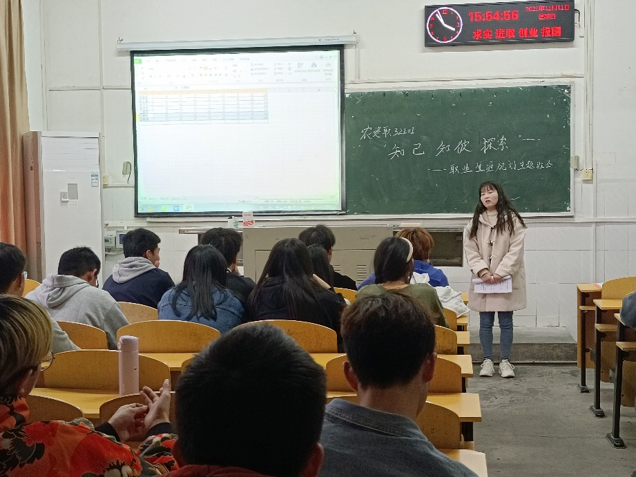 同时,农资职32101班在2教207教室开展了“知己知彼探索职业生涯规划指导”主题班会。学生班主任习小杰强调了英语四级的重要性,同时希望同学们树立远大目标,不能只满足于及格,要向更高层次发展。班主任李继福老师也给大家留下“树立职业精神、建立目标意识……”的职业规划建议。