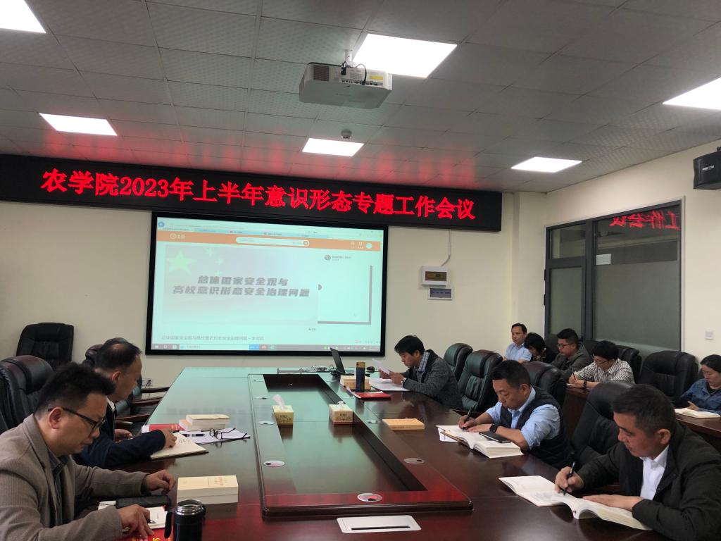 (通讯员 付雪娇)5月11日下午,学院2023年上半年意识形态专题工作会议在农科大楼3064召开,会议由党委书记姜清奎主持,学院领导班子成员、学院党委委员、各党支部书记及各科室负责人参会。