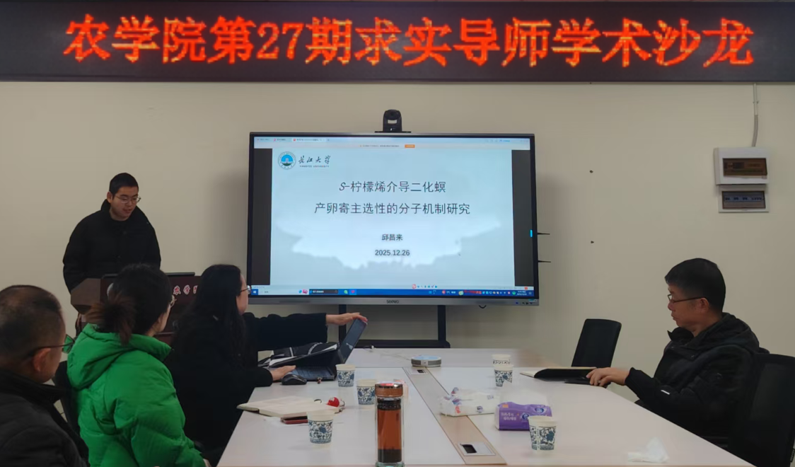 邱昌来副教授以水稻害虫二化螟与褐飞虱通过共享寄主抑制水稻防御的生态现象为切入点,阐述了S-柠檬烯在介导二化螟定位褐飞虱危害水稻过程中的分子机制,并介绍了后续实验计划。在讨论环节,师生围绕该课题踊跃提问,提出了诸多建设性意见。