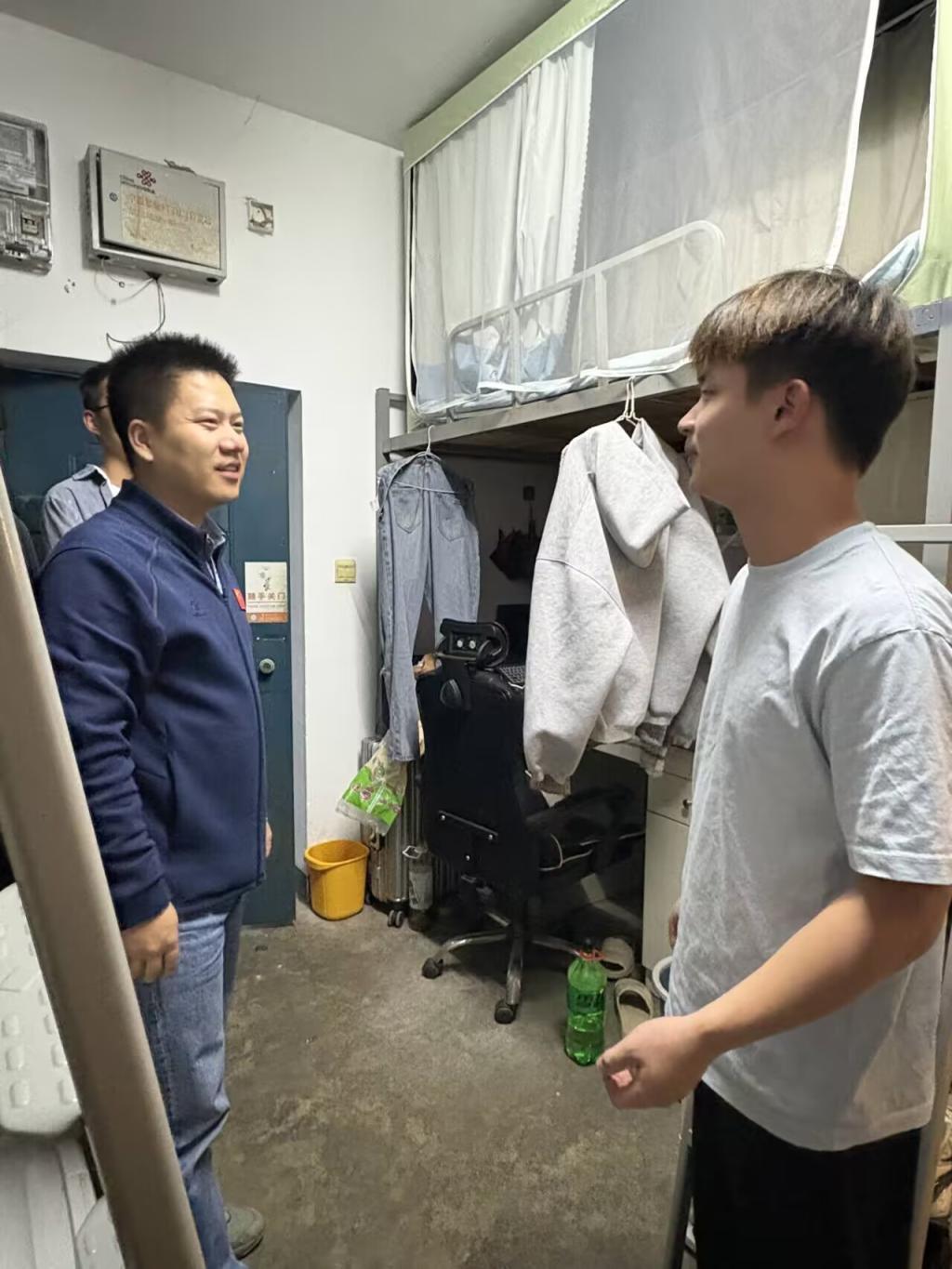 (通讯员 代派领/文 段文洁/摄)为深入了解学生生活环境,进一步加强学生宿舍的卫生与安全管理,排查潜在风险,营造整洁、文明、安全、和谐的学习生活氛围, 9月25日晚7点球王会平台学工办主任黄承石,团委书记付雪娇,辅导员唐玉婷,兼职辅导员郑雪娅,高明銮,宿委会的学生干部集中查寝。