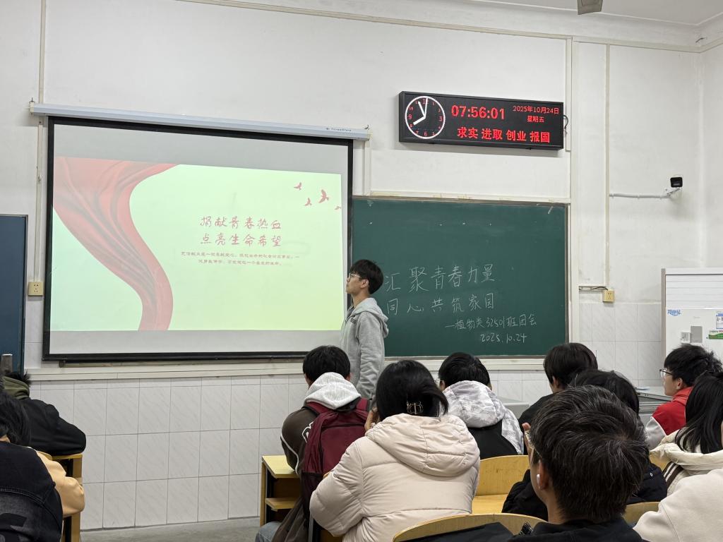 10月21日,植保卓32401班团支部在7教107深入开展团日活动,本次活动由团支部副书记高金凤主持。高金凤号召团员们要充满奉献精神,强化强农使命感并组织学习习近平总书记关于奉献精神的重要论述。在专题研讨中,同学们还围绕“专业服务社会、热血传递温暖”展开积极交流,树立起“奉献社会、服务三农”的共同价值导向。