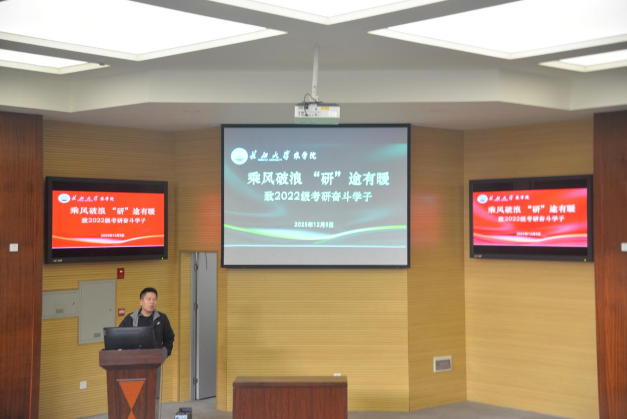 (通讯员 向建华)冬日暖阳浸满报告厅,研途逐梦涌动暖潮。12 月 5 日下午 2:30,农科大楼 1056 报告厅内温情氤氲,球王会平台 “乘风破浪 ‘研’途有暖” 2022 级考研学子关怀活动如期而至,为即将奔赴考场的逐梦者们送上专属关怀与助力。