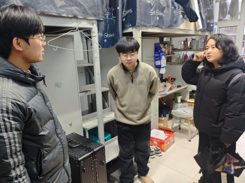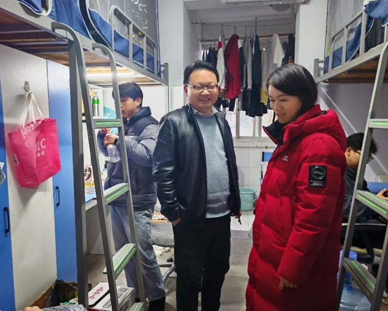 走访过程中,尹小华一行走进多间学生宿舍,与同学们进行了亲切交流。他们细致询问了同学们在假期后的生活适应情况、新学期的课程安排以及日常起居中遇到的困难与需求,并重点了解了大家的学习进展与学业规划。付雪娇老师还叮嘱了同学们要注意劳逸结合,保持宿舍卫生,共同营造安全、舒适、和谐的居住环境。