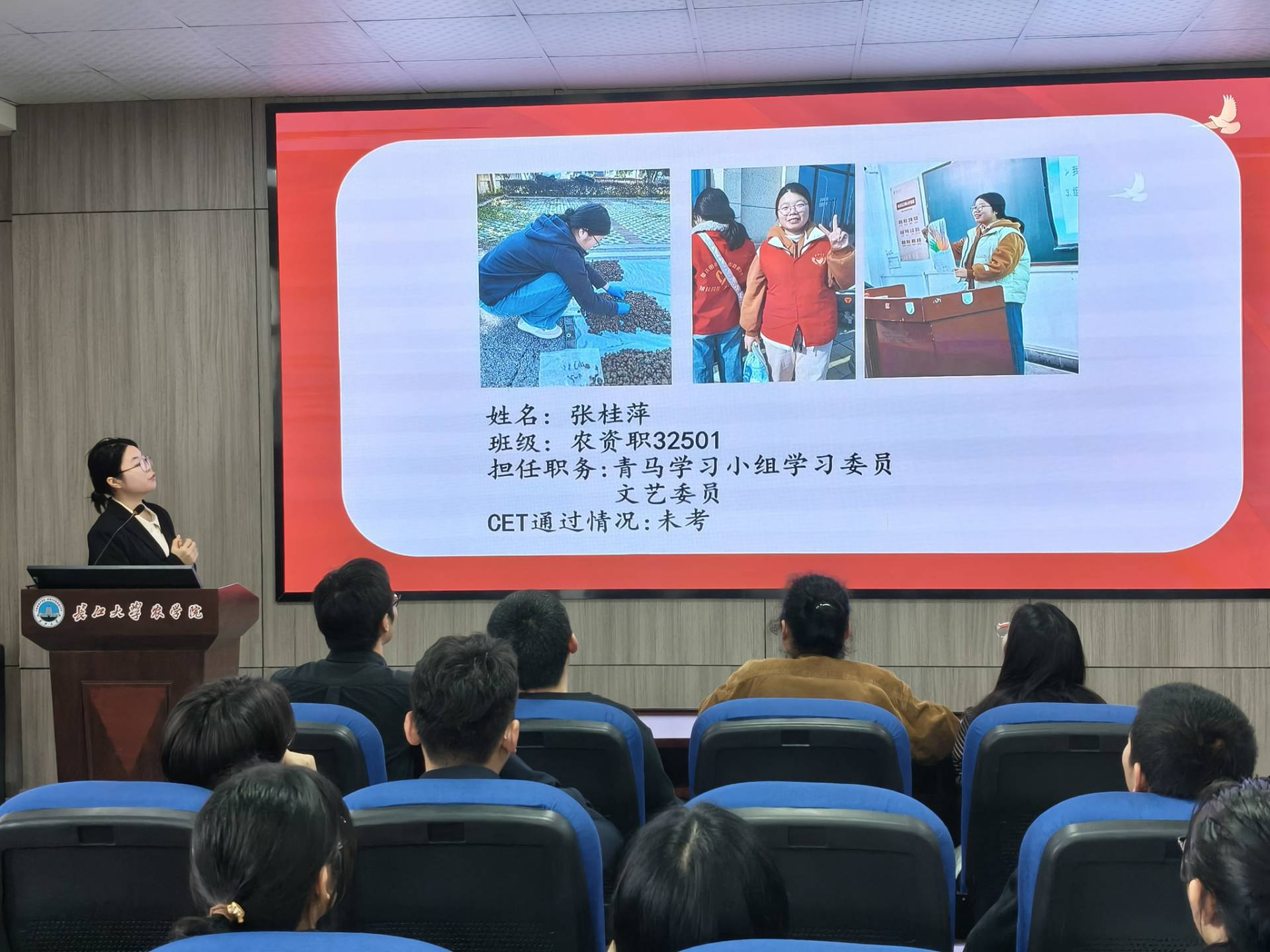 答辩过程中,评委老师们结合候选人汇报内容,从政治理论素养、责任使命担当、先锋作用发挥、个人发展规划等方面展开针对性提问,全面考察参选学生的综合素养与思想觉悟。面对评委提问,各位候选人精神抖擞、从容应答,思路清晰、言辞恳切,充分展现出农学学子朝气蓬勃、奋勇争先、积极向上的精神风貌。