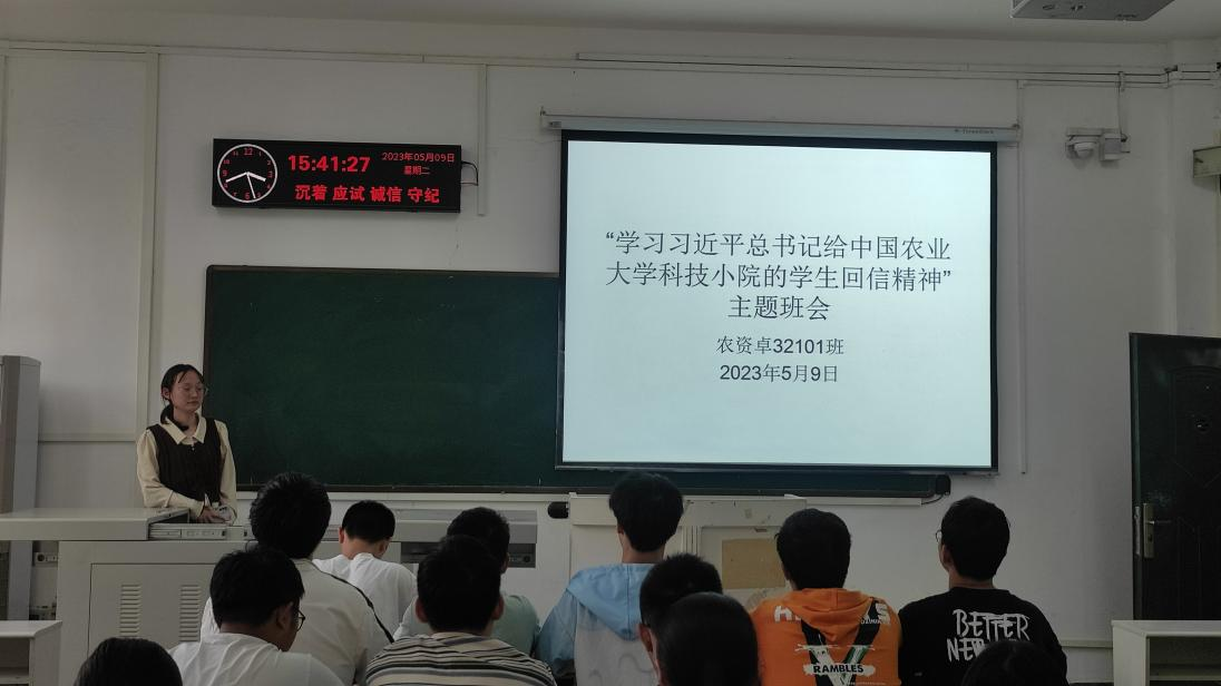 其中农资卓32101班班长围绕“怀抱梦想、脚踏实地”这两个关键词,以习近平总书记的回信为契机,召开“学习习近平总书记给中国农业大学科技小院的学生回信精神”主题班团会。