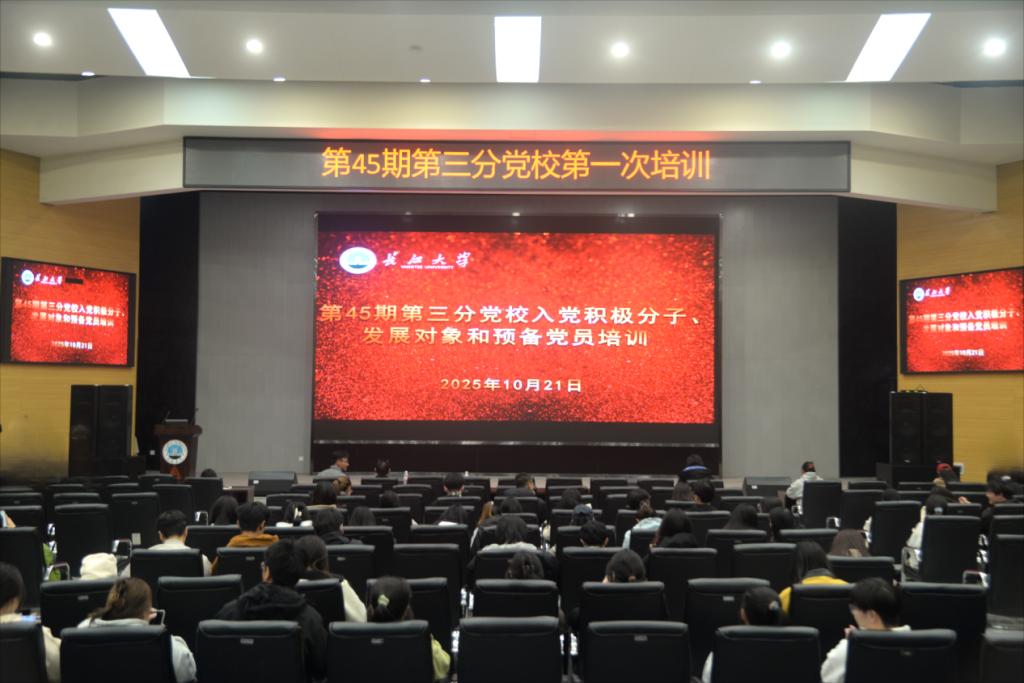 (通讯员 郑怡乐 王思雨/文 严树彬 方学斌 王浩源/摄)“学党章明方向,强信念向组织”。为深化青年学员对党的理论认知,筑牢 “跟党走、为人民” 的理想信念根基,球王会平台于10月21日晚 7点在农科大楼1058报告厅开展第45期第三分党校第一次培训。本次培训由球王会平台党委书记周锦华主讲,辅导员唐玉婷主持,生命科学学院辅导员李敏和第三分党校入党积极分子、发展对象及预备党员共同参与。