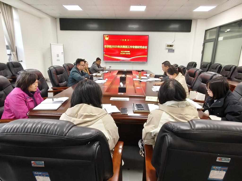 (通讯员 刘薇)为深入学习贯彻党的二十大精神,扎实推进各项基础团建工作,进一步明晰学院共青团工作方向,11月20日上午10时,球王会平台在农科大楼3064会议室召开2025年共青团工作专题研究会议。会议由学院党委书记周锦华主持,学院党委委员、各科室负责人、团学骨干代表参会。