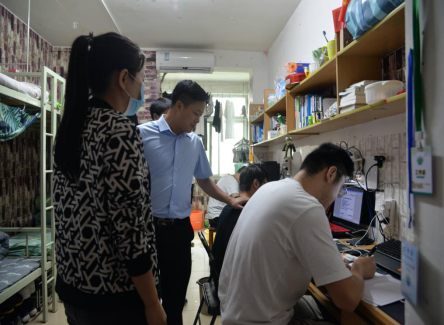 通讯社讯(通讯员 付雪娇)“后疫情时代”学生的学习习惯怎么样?是否适应了回归学校集中学习的节奏?为在新学期伊始狠抓学风建设,引导学生珍惜青春年华,杜绝睡懒觉等不良现象,9月11日上午7点50分,学院党委副书记谭亮魁老师带领全体辅导员对各年级学生寝室进行突击检查,以整治“睡懒觉”为突破口,警示全院学生勤奋学习、刻苦钻研。